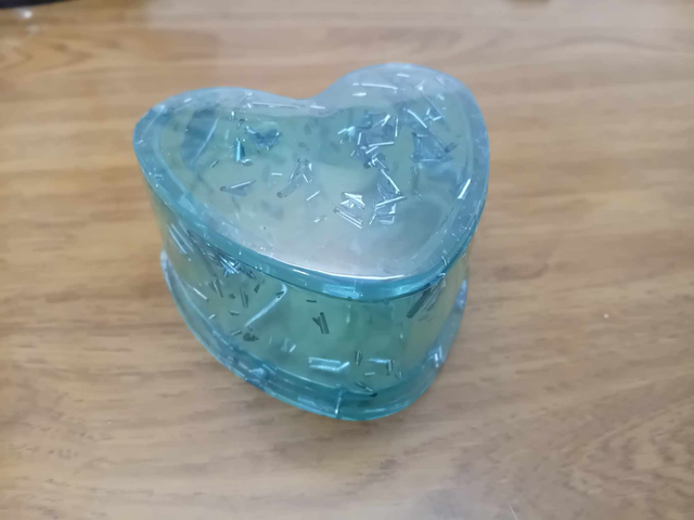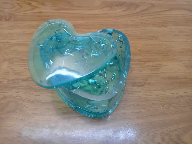 boite coeur bleu avec feuilles pailletés bleu turquoise