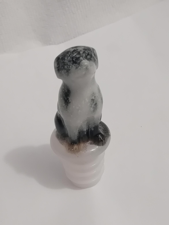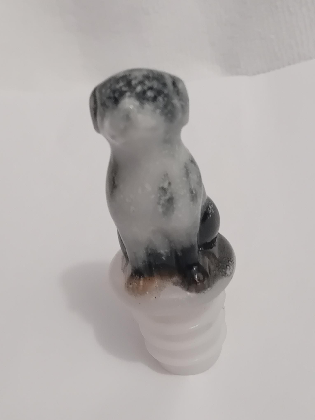 Bouchon pour bouteille de vin forme chien noir et blanc