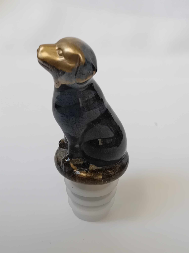 Bouchon pour bouteille de vin en forme chien couleur noir et or