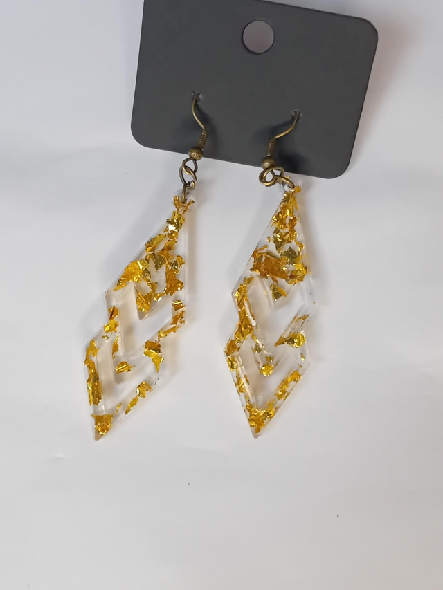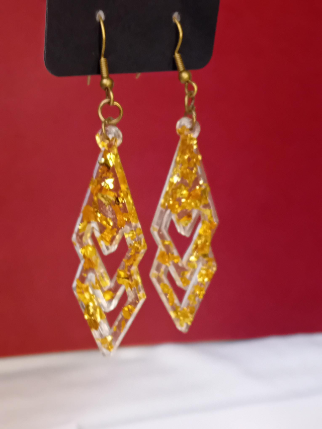 boucle d'oreille transparente avec feuilles pailletés or