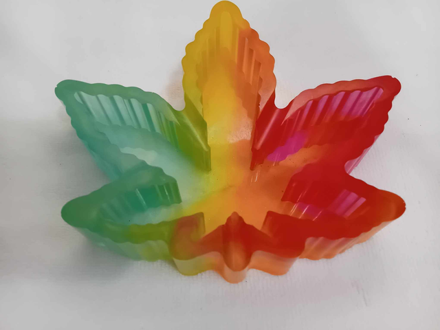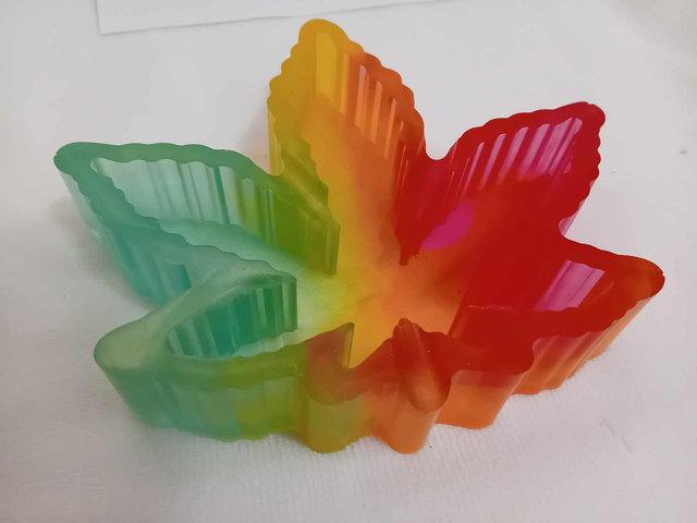 Cendrier grande feuille d'érable vert jaune rouge