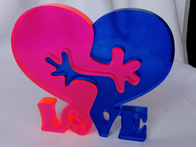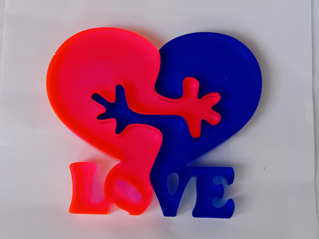 Double cœur puzzle avec écrit love 1 puzzle couleur rose et 1 puzzle couleur bleu à poser