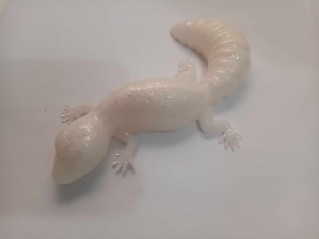 Géko ou lézard blanc avec paillettes holographique