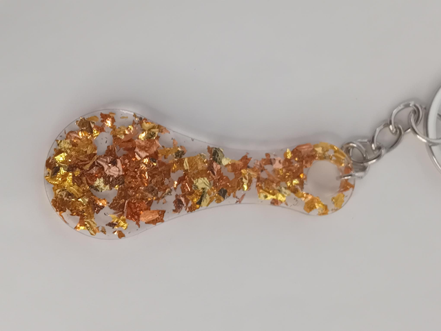 Jeton de caddie transparent avec feuilles pailletés or et cuivré