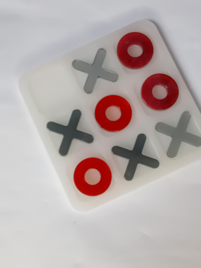 Jeu de morpion blanc avec pions noir et rouge