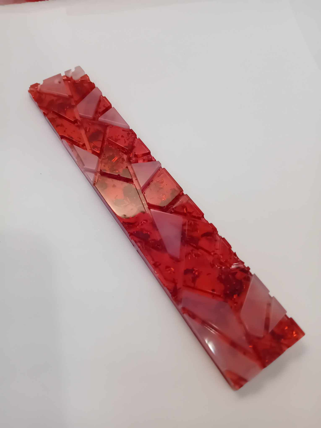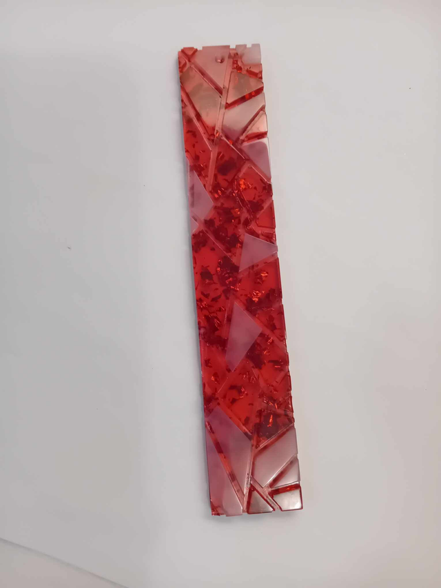 Marque page relief grande mosaïque transparent rouge avec feuilles pailletés rouge sera vendu avec pompon de couleur à votre demande