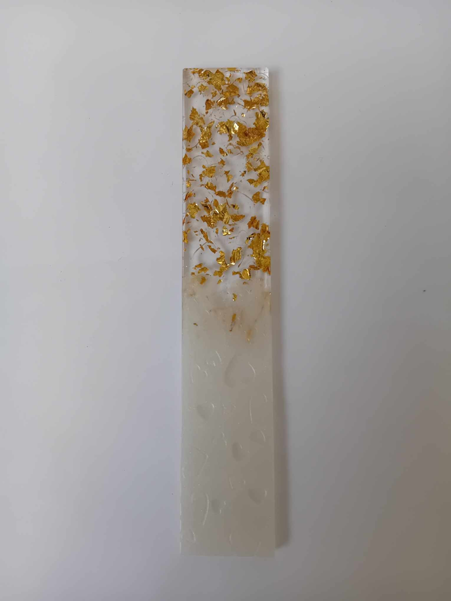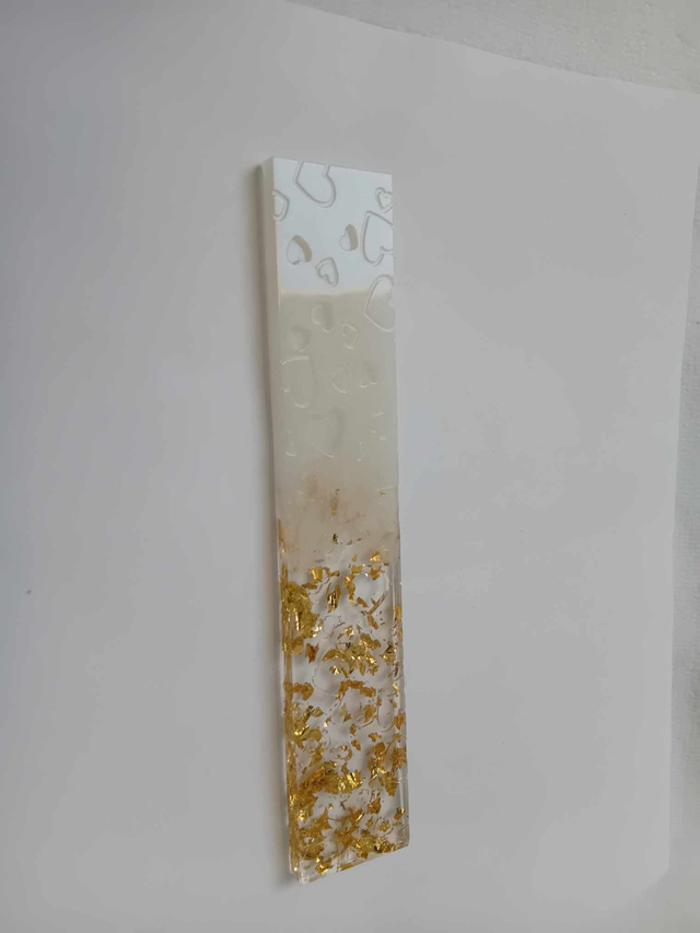 Marque page relief cœur blanc nacré et transparent avec des feuilles pailletés or sera vendu avec un pompon de couleur à votre demande