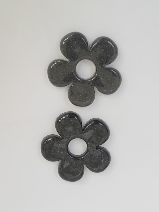 Pampille fleur noir nacré sera vendu avec créoles or ou argent