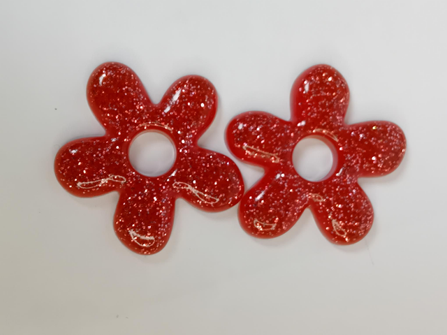 Pampille fleur rouge pailletés sera vendu avec créoles or ou argent à votre convenance