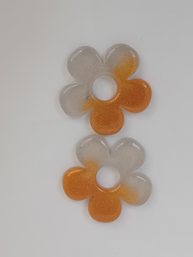 Pampille fleur gris argenté et or orangé sera vendu avec créoles or ou argent