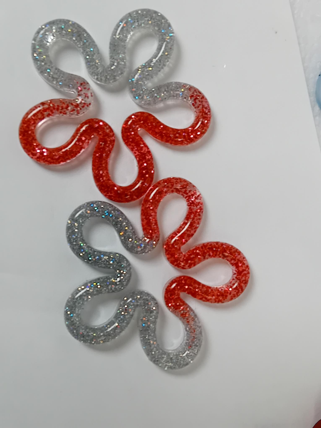 Pampille contour fleur argent et rouge pleins de paillette sera vendu avec créoles or ou argent à votre convenance