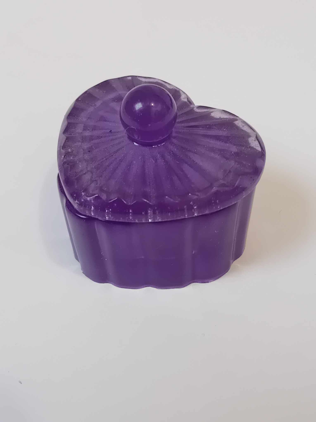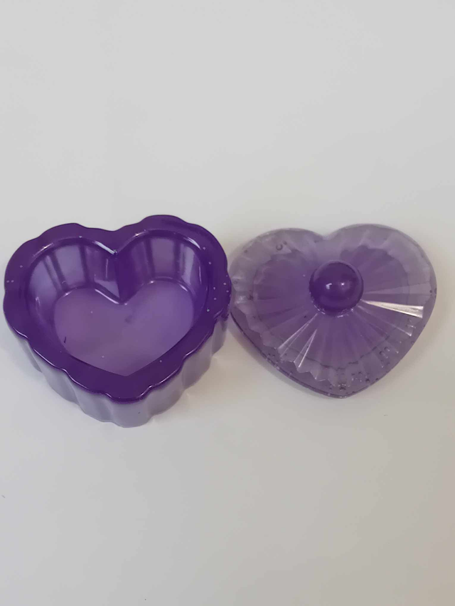 Petite boite à bijou ou à dent de lait en forme de cœur , violette transparente