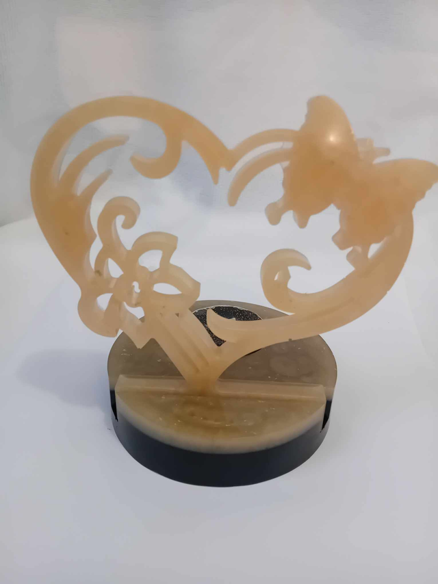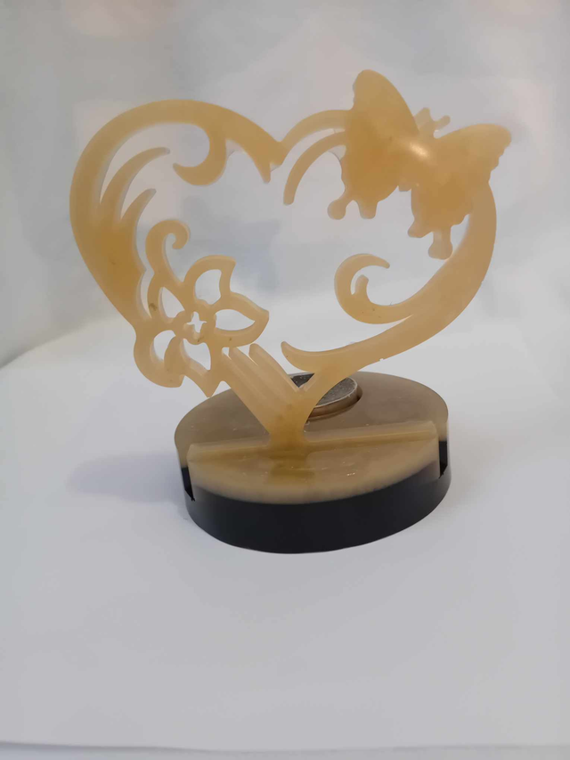 Photophore Papillon sur cœur couleur beige nacré sur socle beige nacré et noir