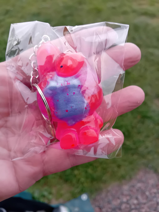 Porte clé animal chat de série mais je ne sais plus son nom rose vif et beau ciel env 5cm