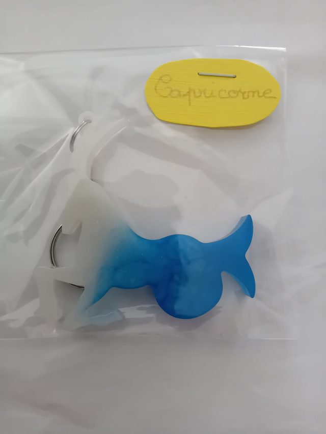 Porte clé signe astrologique capricorne bleu et blanc nacré