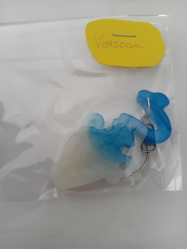 Porte clé signe astrologique verseau bleu et blanc nacré