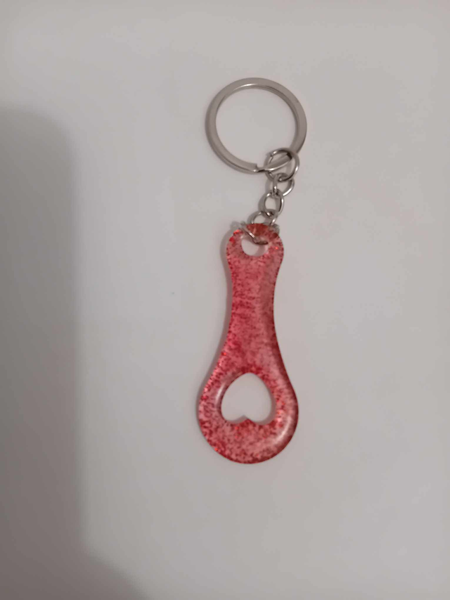 porte clef jeton de caddie transparent avec paillettes rouge en forme coeur