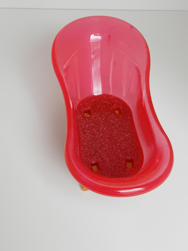 Porte -savon baignoire rouge rosé nacré avec pieds doré