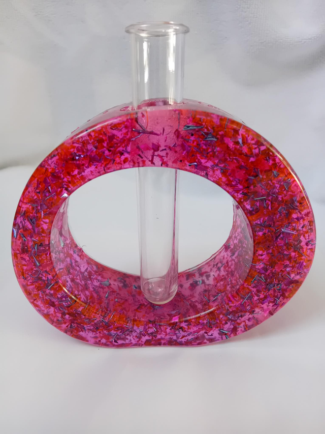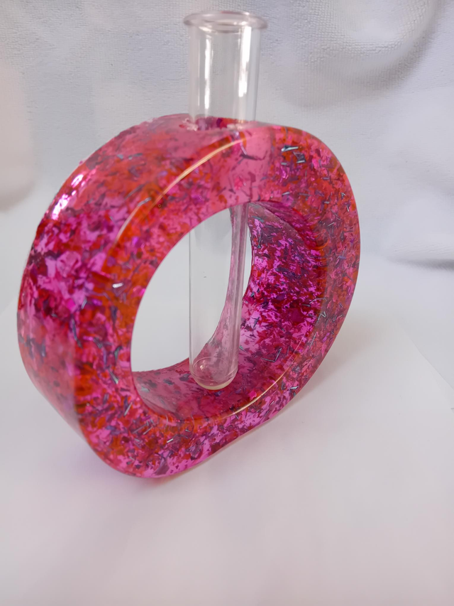 Soliflore rose transparent avec feuilles pailletés rose et bleu