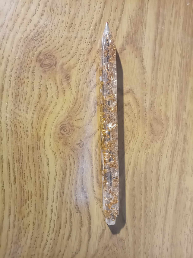 stylo bic forme carré transparent avec feuilles pailletés argent et champagne