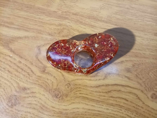 bague de lecture forme coeur transparente avec feuilles pailletés or et rouge