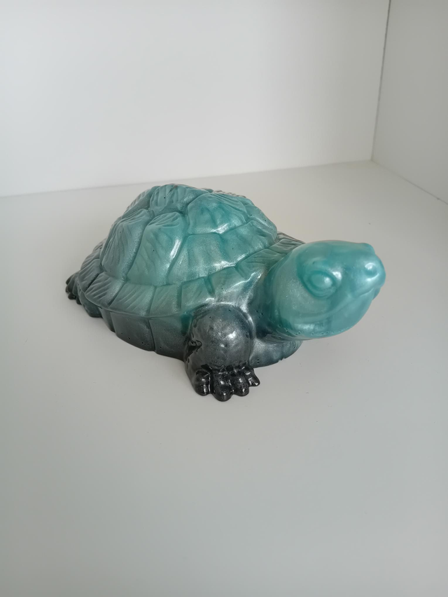 Tortue de terre grand modèle env 12cm vert clair nacré et noir nacré
