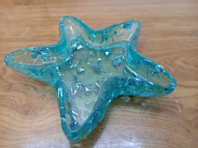 vide poche étoile de mer couleur bleu turquoise avec feuilles pailletés bleu turquoise
